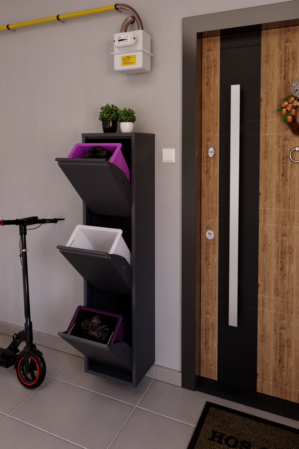 Bristol platzsparender Mülltrenner aus pflegeleichtem Metall.