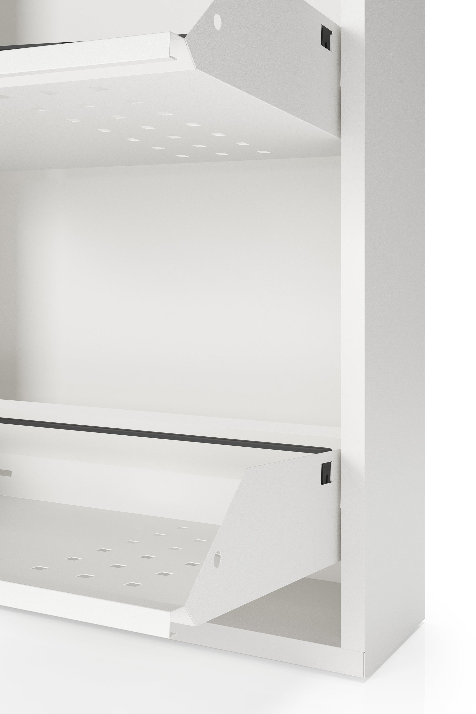 Das perfekte Schuhschrank in einem sehr eleganten Design aus Metall angefertigt und ist Pulverbeschichtet. Mit einem schönen Muster für die perfekte Belüftung der Schuhe.